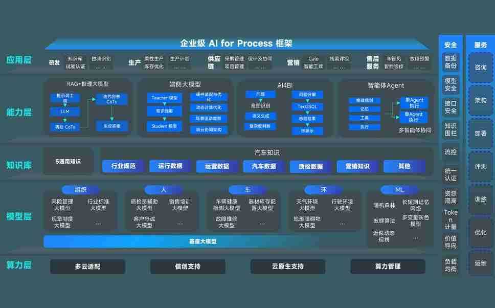 端到端的一站式AI工作空间深度融合了从企业战略规划到日常经营的全流程业务板块,,定向解决车企内部领域多、、部门多、、链条长、、、、场景碎片化等难题,,,支持车企快速构建以AI为核心的生产力写作体系,,,,实现任务执行与AI能力的无缝集成与交互